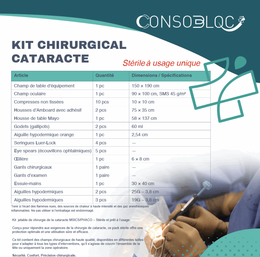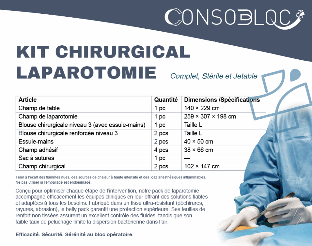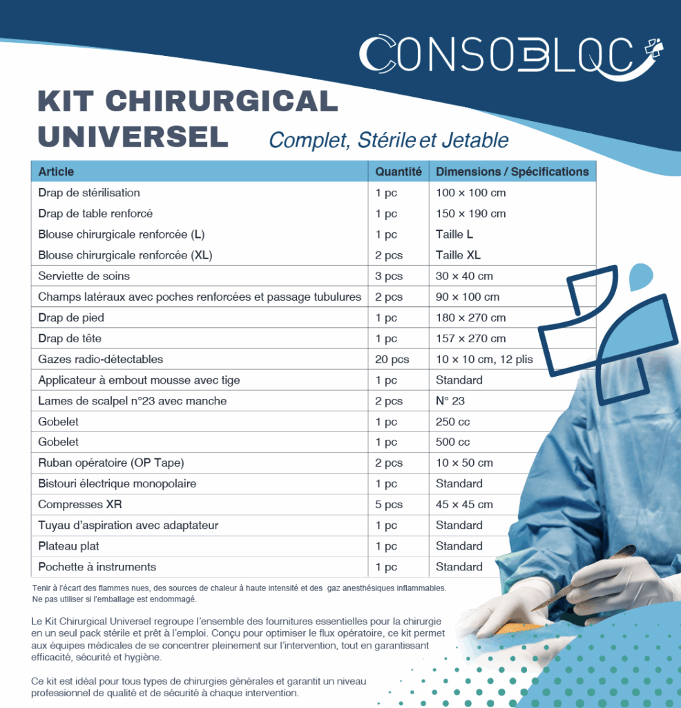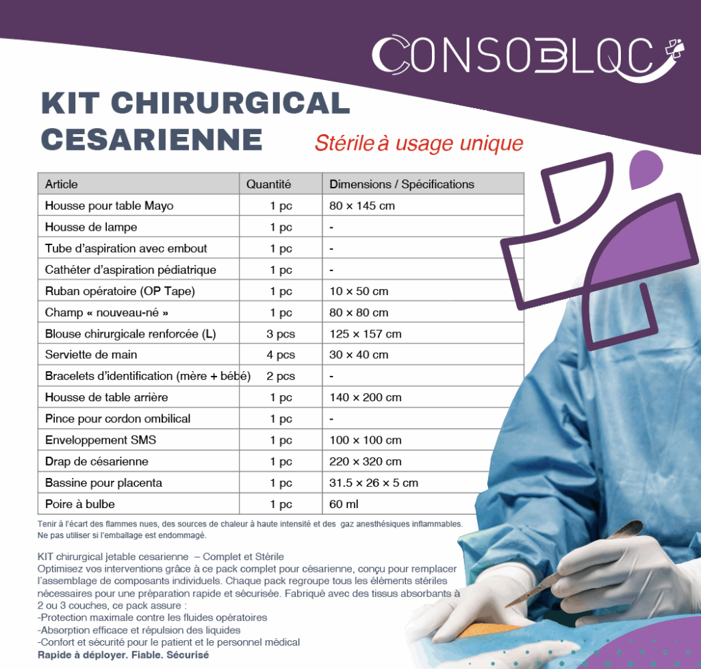 ConsoBloc propose une gamme complète de dispositifs médicaux à usage unique, conçus pour garantir sécurité, confort et efficacité en milieu opératoire!